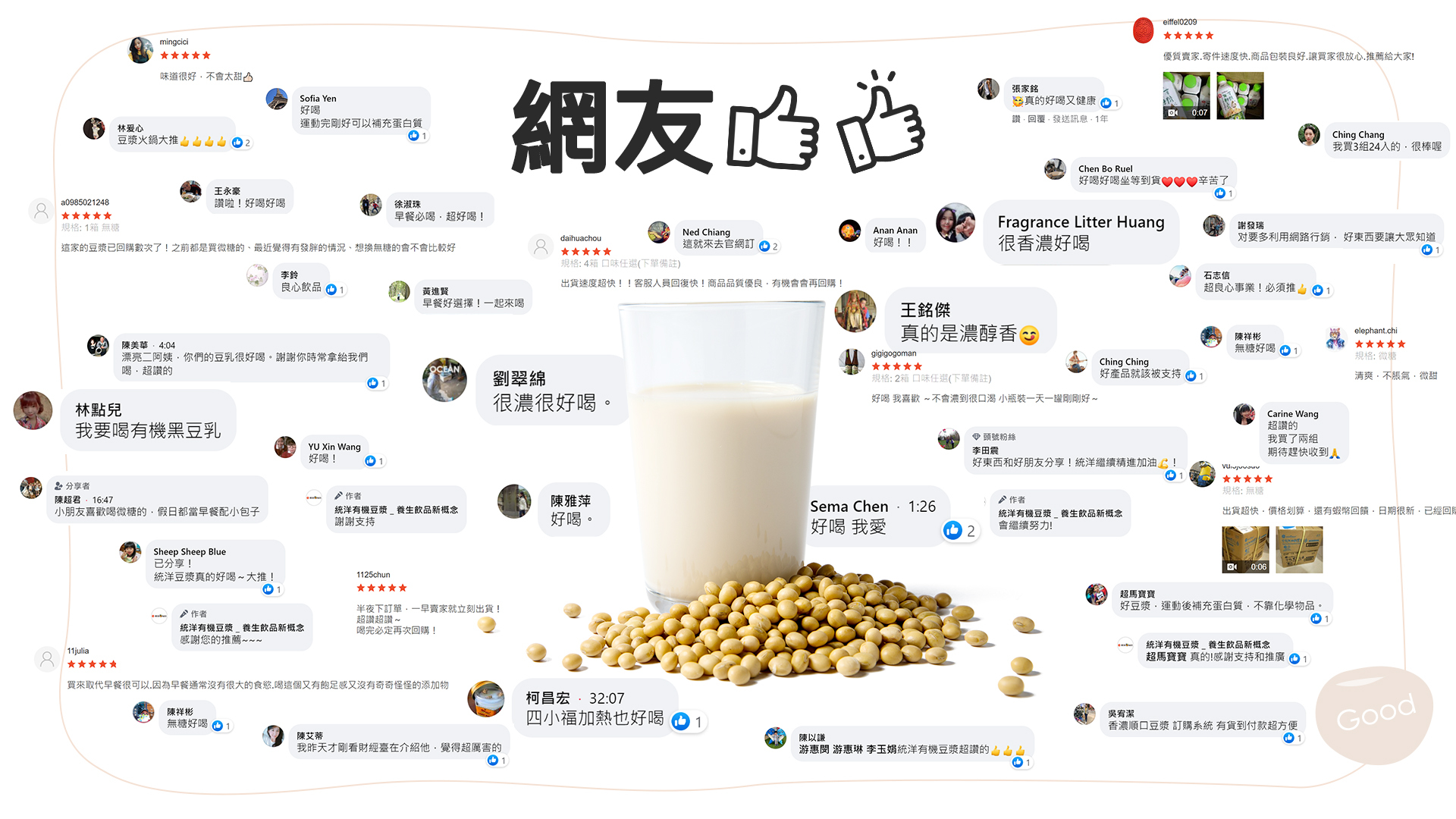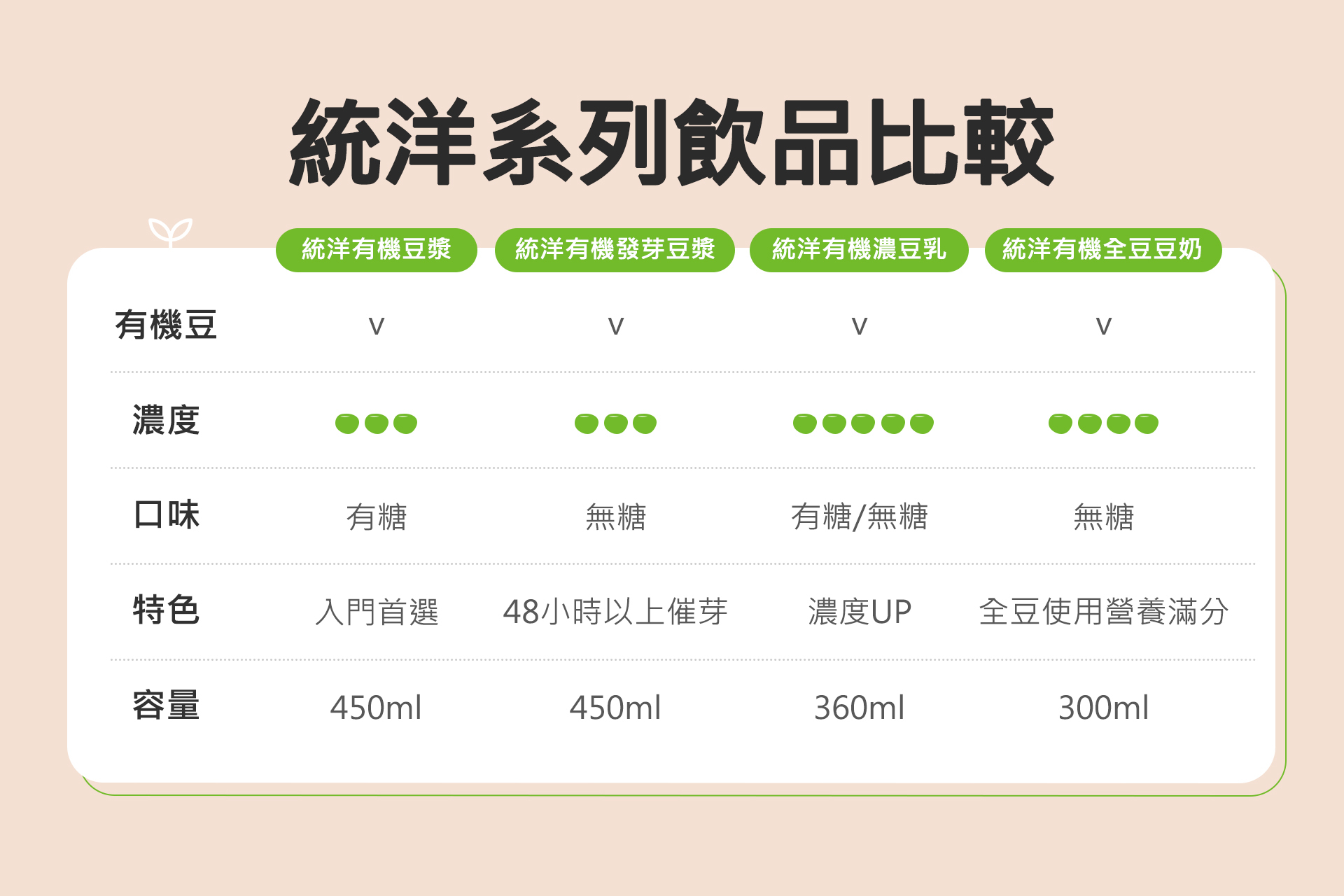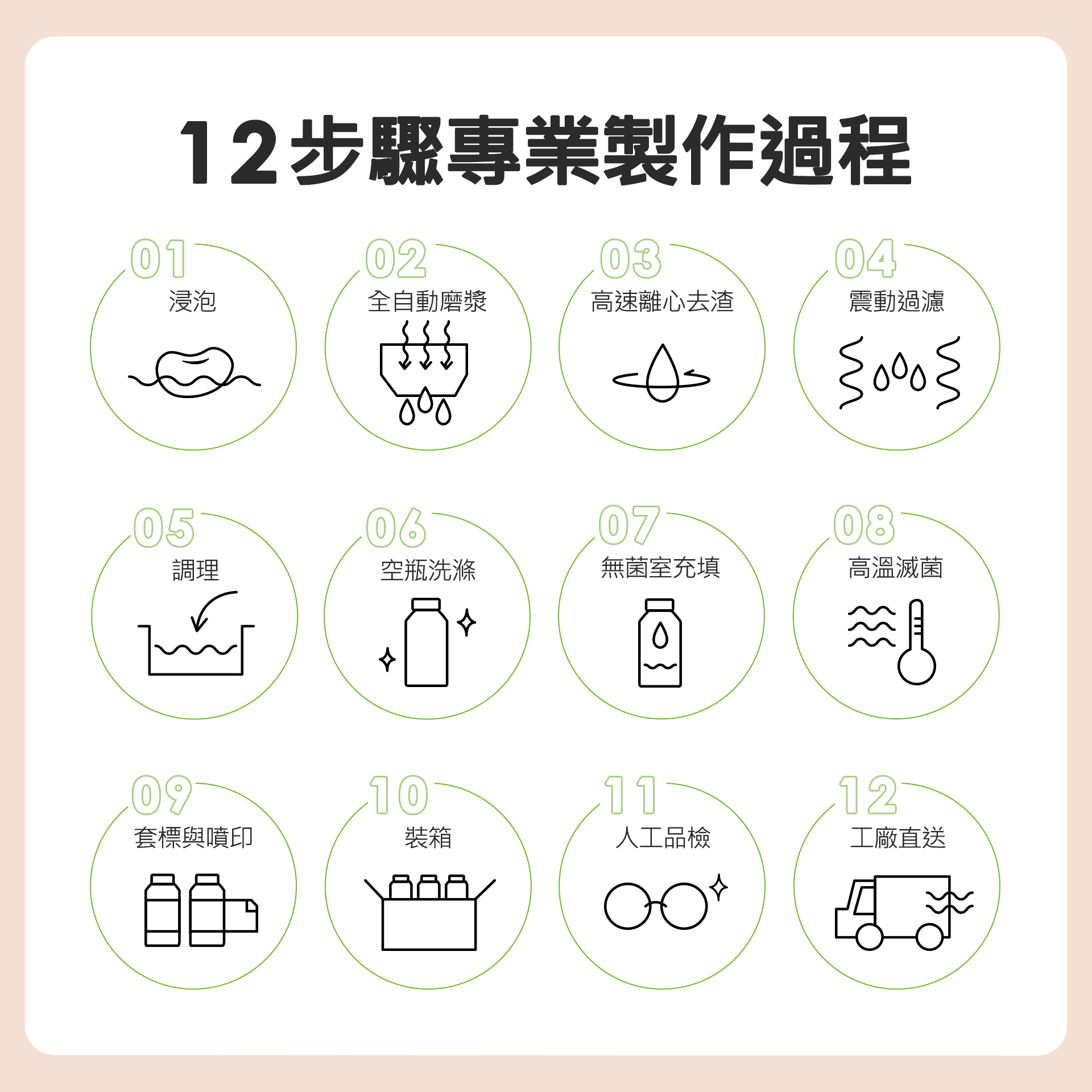 100%有機純可可粉添加,並堅持使用上等的原豆磨煮,搭配純淨的蘭陽水製造,豆香非常濃郁香醇順口,營養豐富,冷藏後風味更佳,亦可加溫飲用。是最自然又健康的養生的飲品。