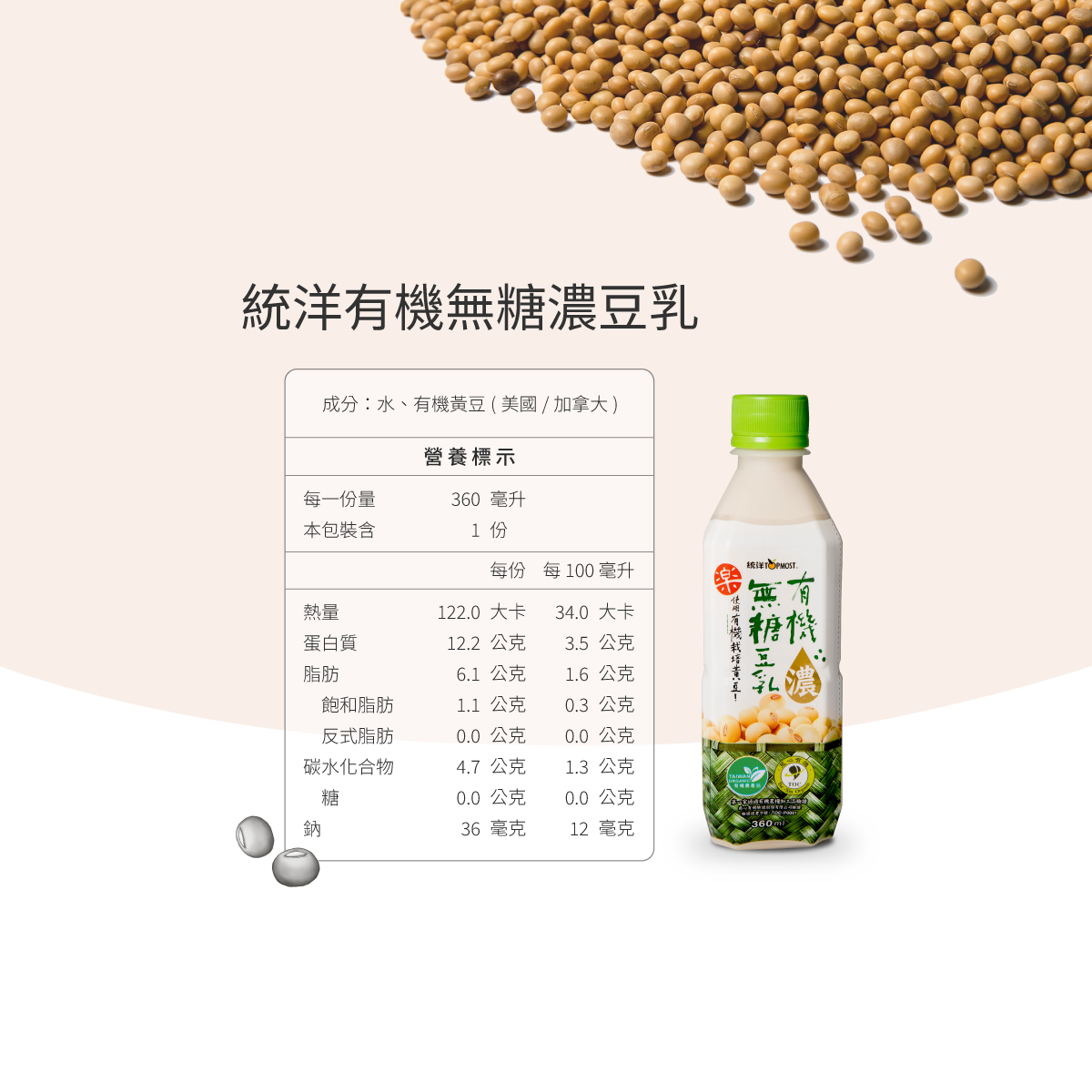 堅持使用上等的原豆磨煮,搭配純淨的蘭陽水製造,豆香非常濃郁香醇順口,營養豐富,冷藏後風味更佳,亦可加溫飲用。是最自然又健康的養生的飲品。不添加防腐劑,不添加人工香料及色素,含純天然植物性蛋白質及大豆異黃酮,營養豐富、味甜甘美。