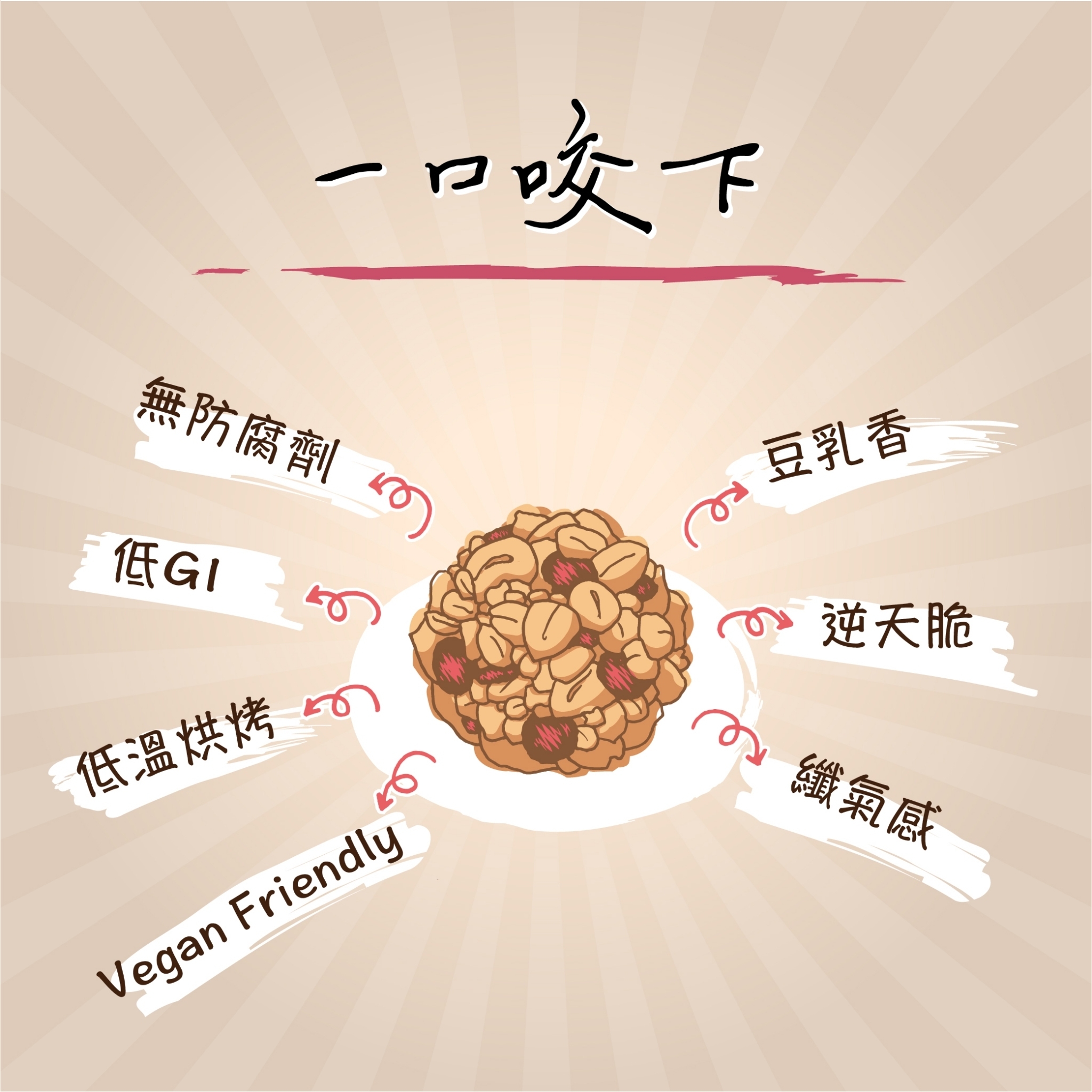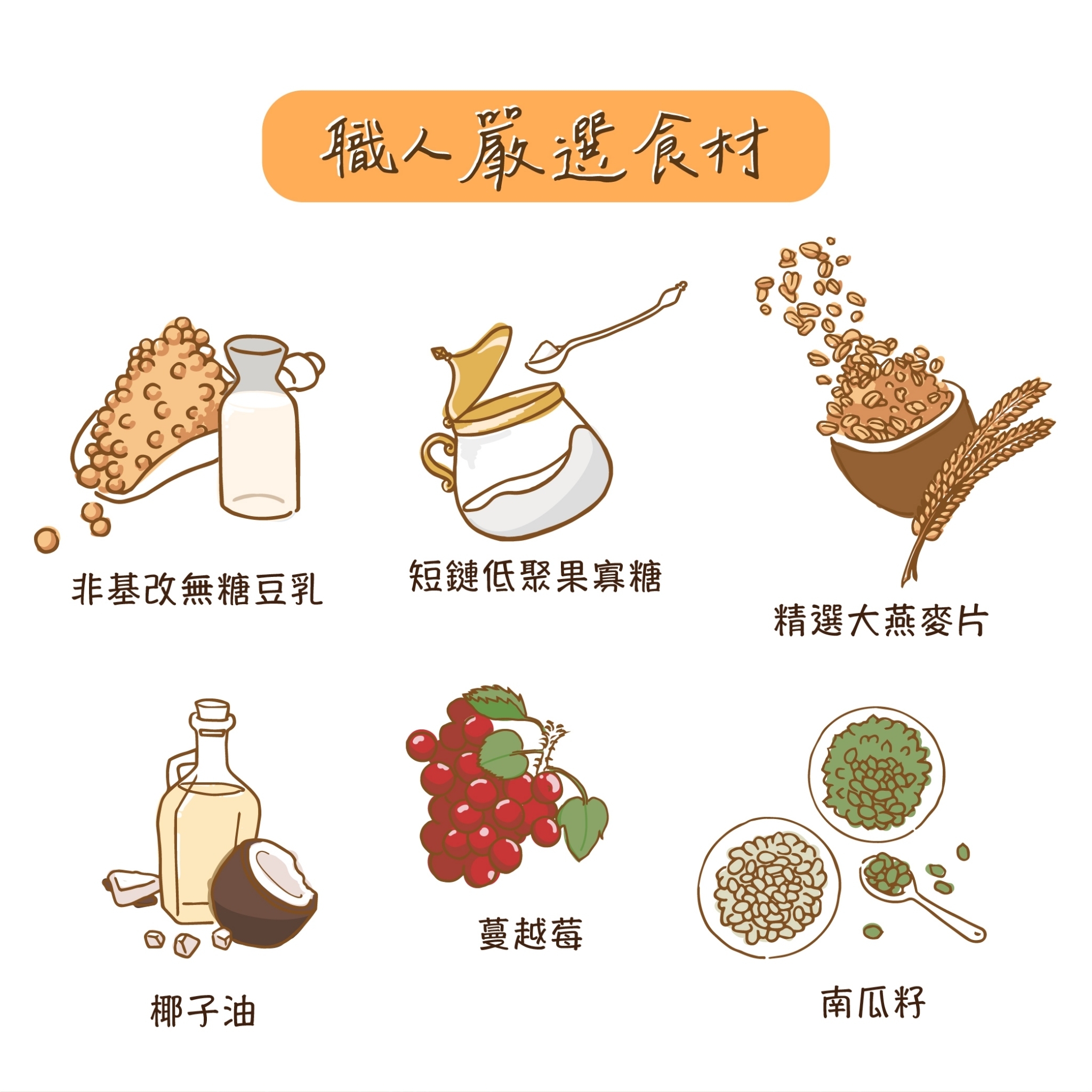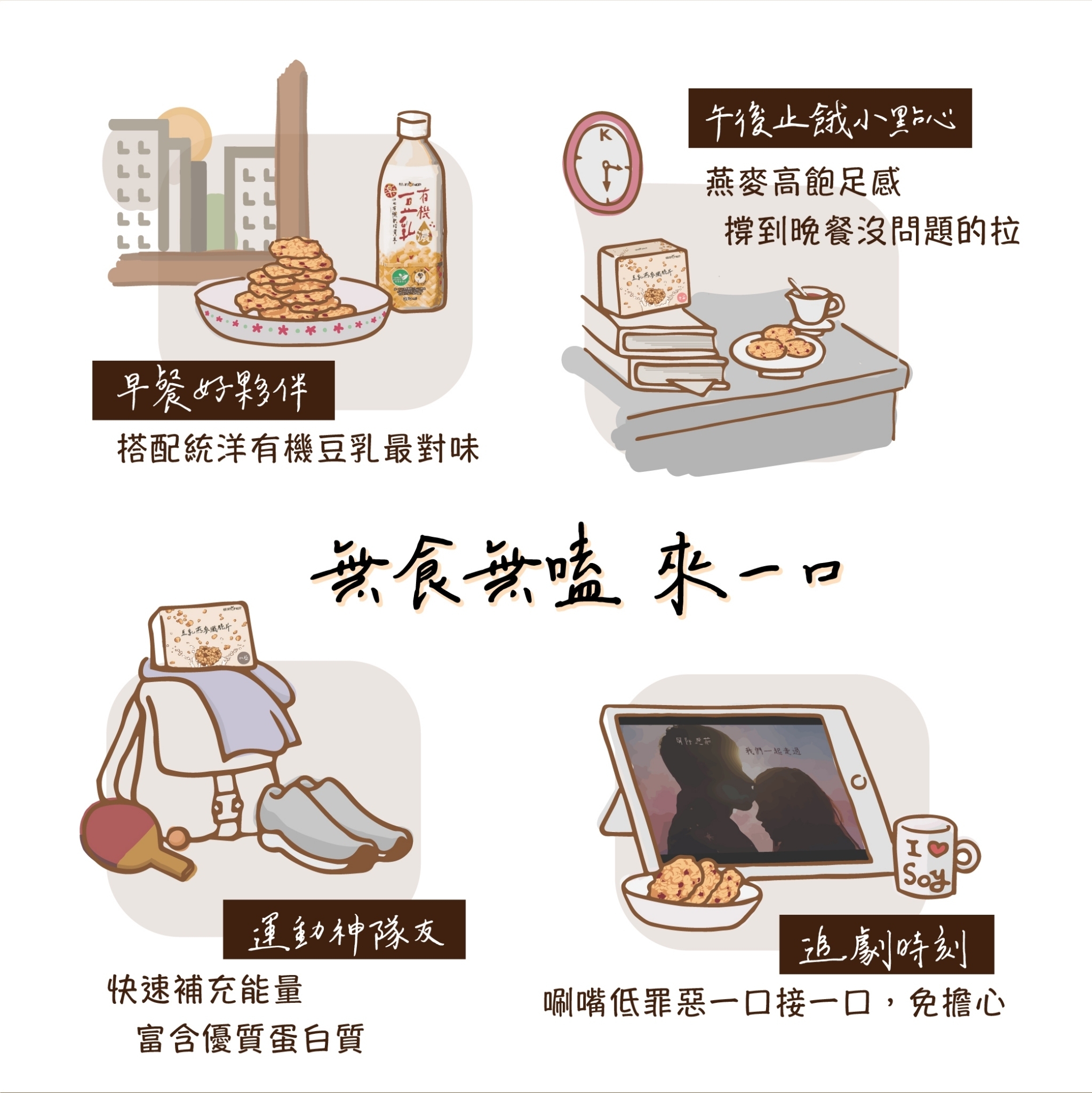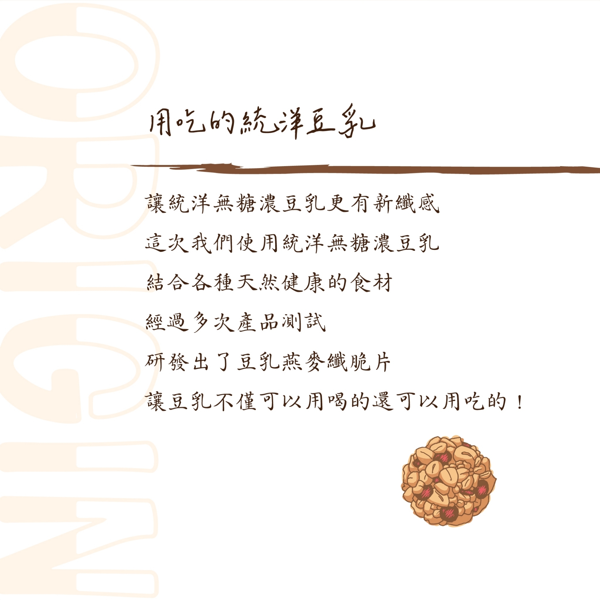 統洋豆乳+新鮮燕麥穀物烘烤而成,保留食材原始風味和養分