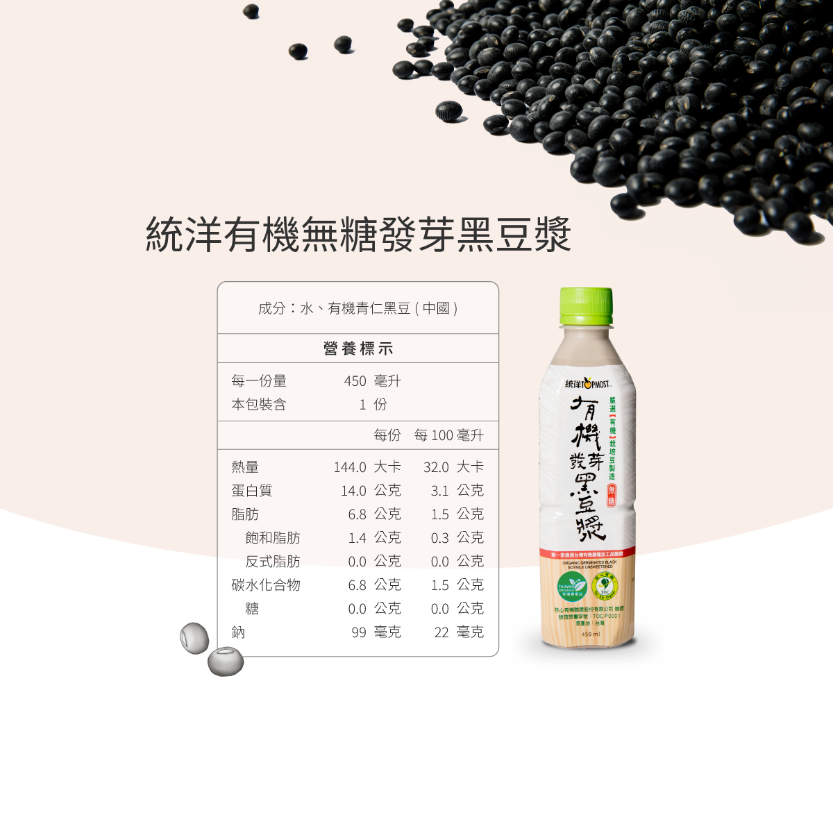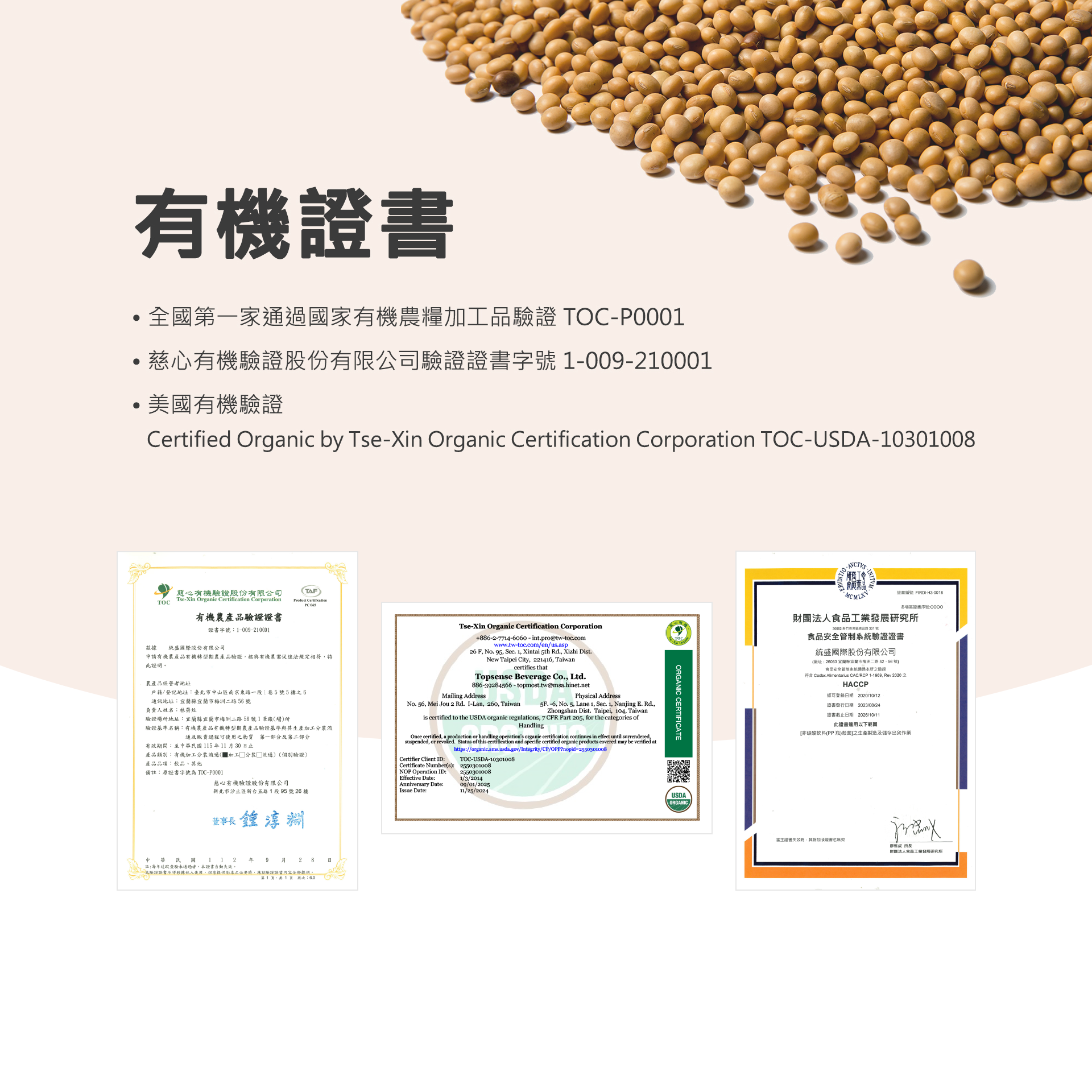 精選優質有機黑豆,以先進技術磨煮而成。為現代人最佳的天然養生聖品好選擇。100%有機不添加防腐劑及任何添加物,含天然植物性蛋白質及大豆異黃酮,營養豐富、味甜甘美。